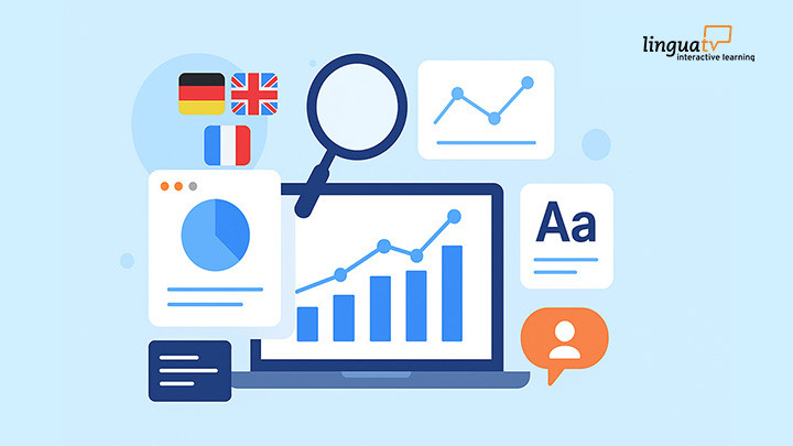 Learning Analytics entwickelt sich zunehmend zu einem Schlüsselfaktor für die erfolgreiche Umsetzung von Online-Sprachkursen in Unternehmen. Welche Vorteile bietet Learning Analytics? Und was gibt es bei der Umsetzung zu beachten? In diesem Artikel haben wir die wichtigsten Punkte für Sie zusammengefasst.